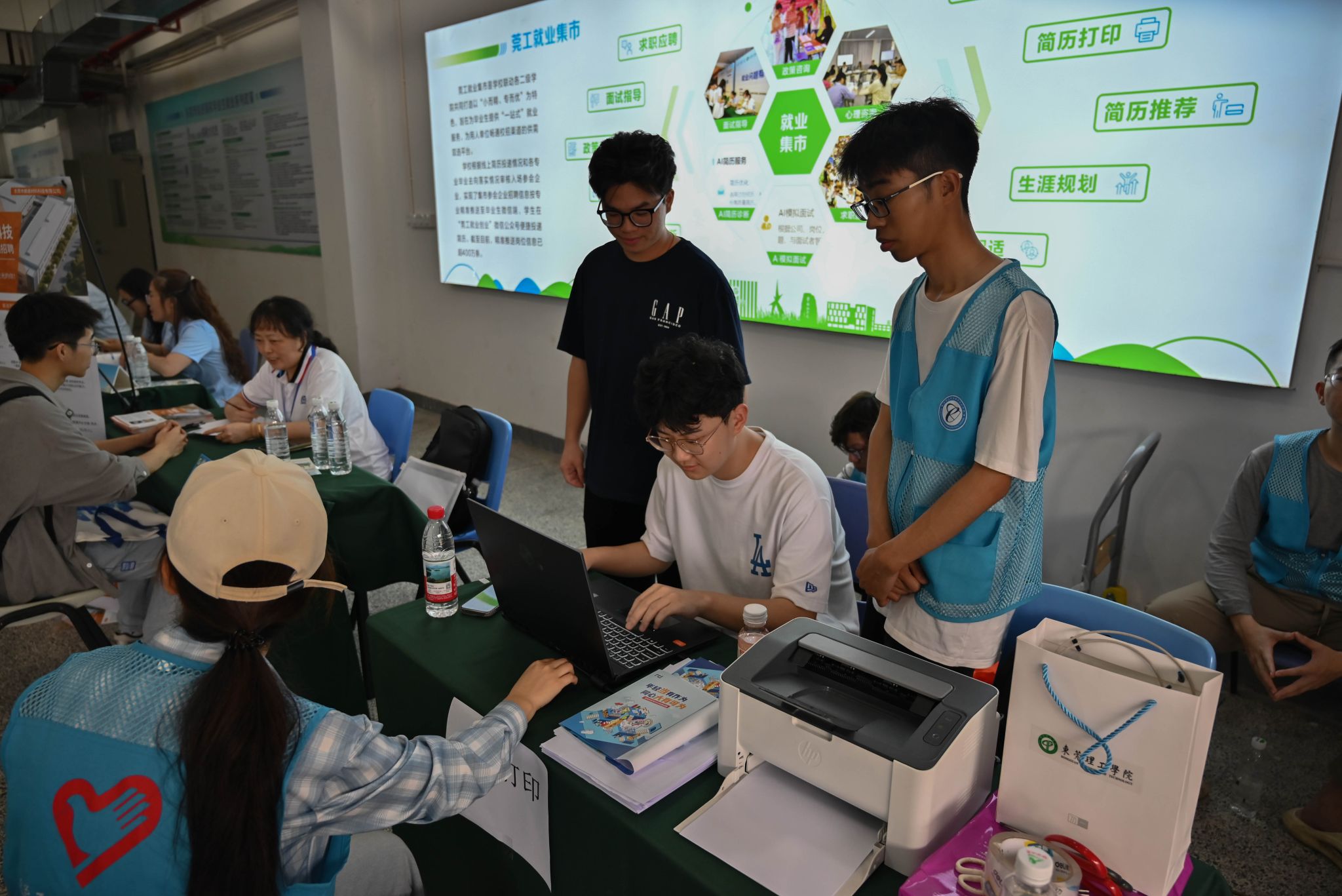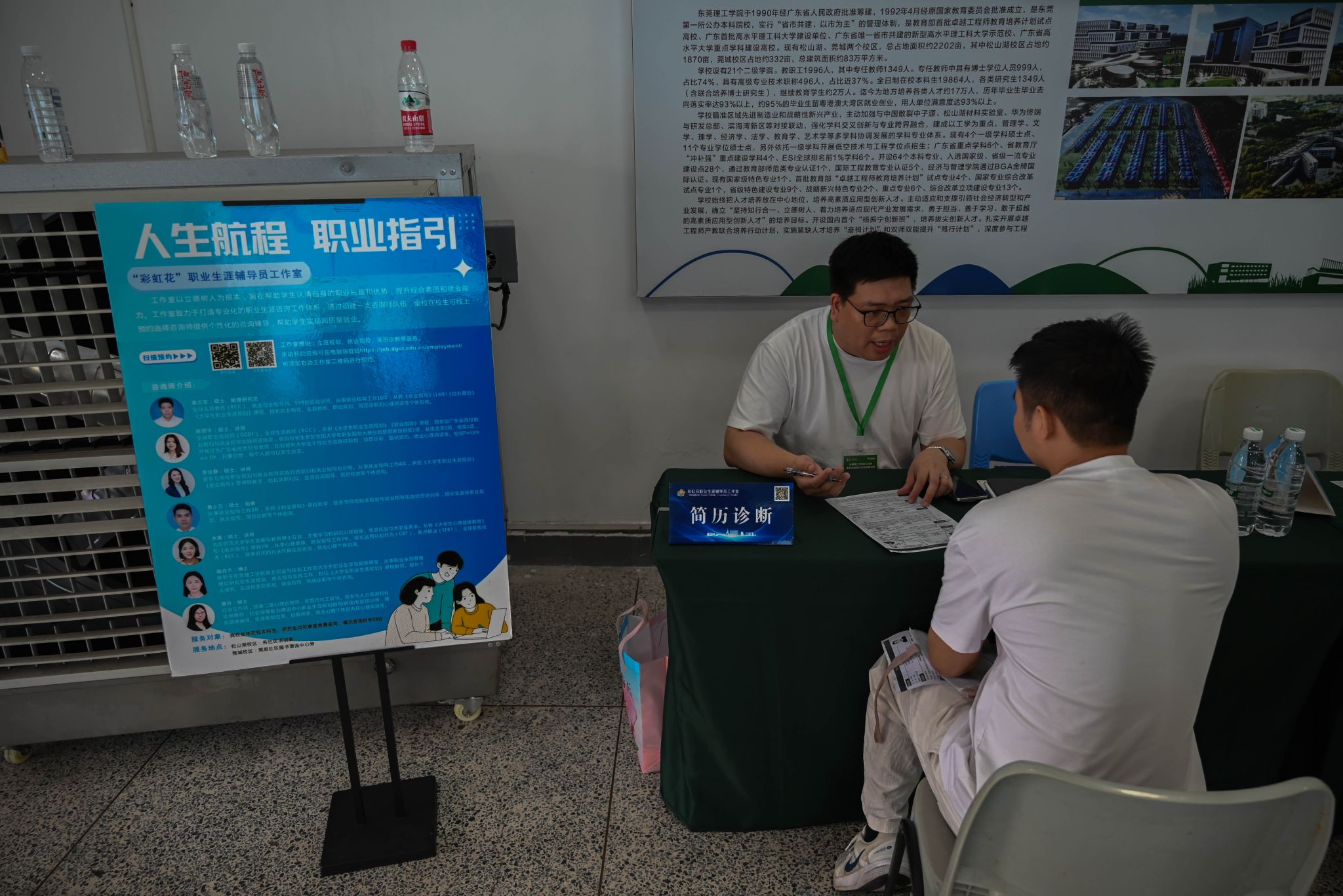 招聘会现场还设置了简历打印、简历诊断等服务,彩虹花职业生涯规划辅导员工作室负责人开展一对一简历精准指导。针对简历中的内容排版、经历梳理、岗位匹配等问题细致分析、精准点拨,提出针对性修改建议,帮助同学们优化简历内容,补齐求职短板。