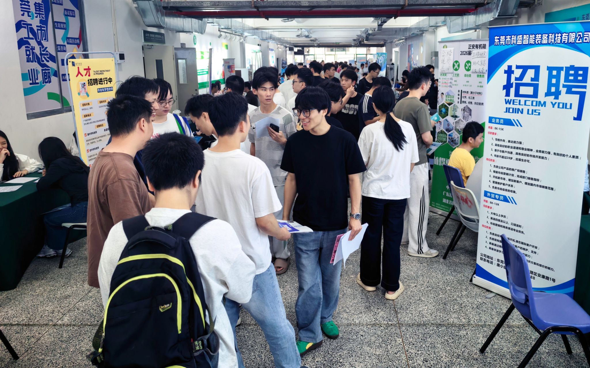 本场招聘会亮点纷呈。一是优质企业云集:超40家企业参会,含上市公司、国家高新技术企业、“专精特新”企业等,代表企业有马可波罗控股、生益电子股份、新奥集团、富联裕展科技、上海锐巴新材料、东莞市佳迪新材料有限公司、惠州市龙晖翔科技有限公司等;二是专业技术岗聚焦:企业大多由东莞合成橡胶协会、东莞化工学会推荐,是材料与化工相关专业学生的“主场”,同时涵盖机械电子、电气工程、自动化、市场营销、行政管理等多专业领域;三是岗位薪酬可观:总岗位需求超580个,平均薪酬5000-15000元/月,技术岗、管理岗薪酬可达8000-15000元/月,适配不同学历、专业方向求职需求。