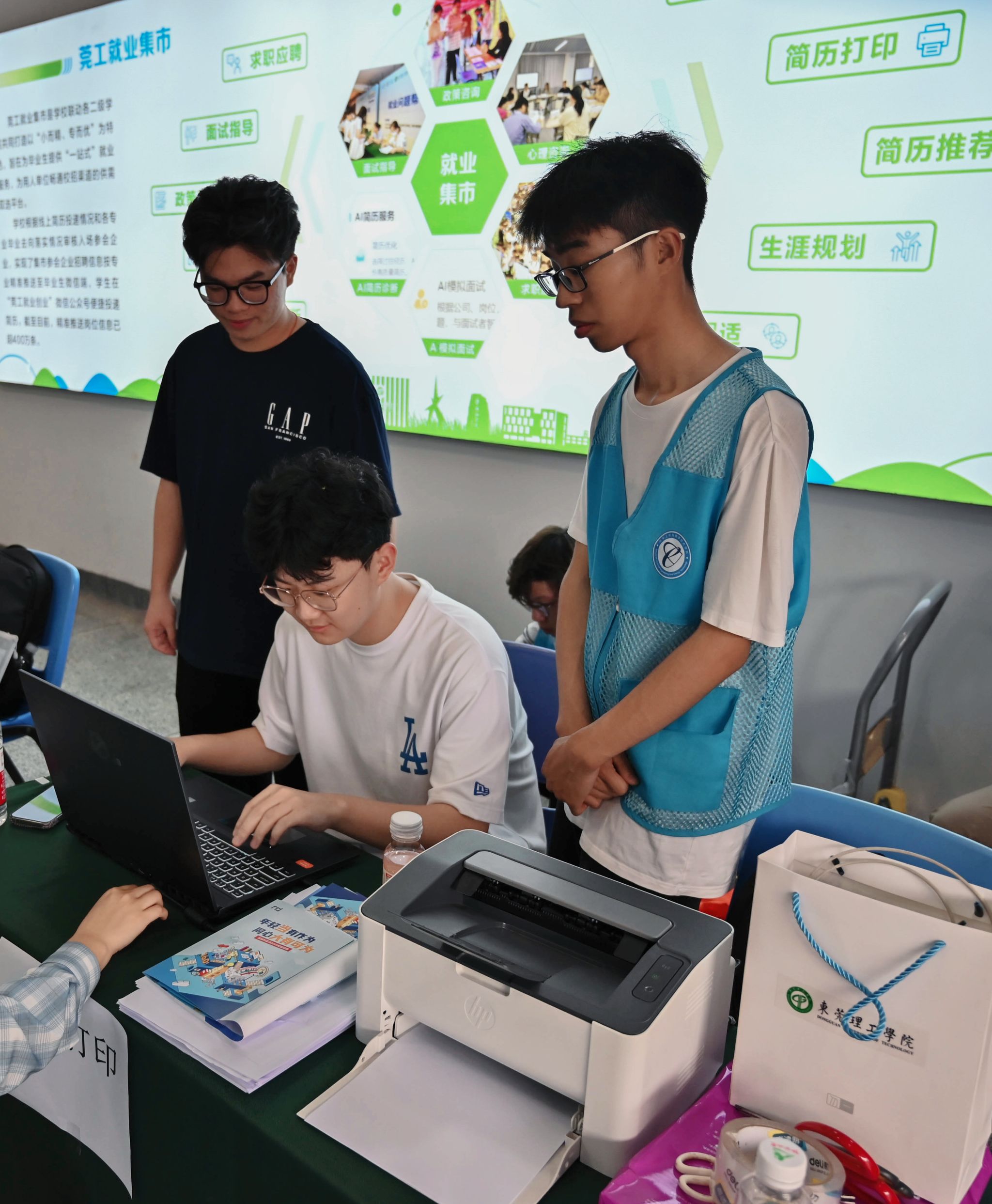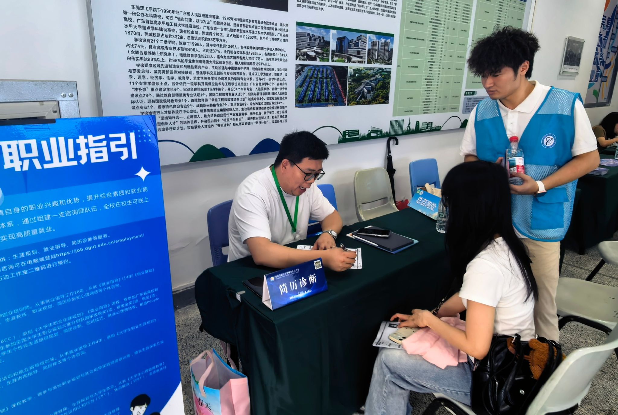 招聘会现场还设置了简历打印、简历诊断等服务,彩虹花职业生涯规划辅导员工作室负责人开展一对一简历精准指导。针对简历中的内容排版、经历梳理、岗位匹配等问题细致分析、精准点拨,提出针对性修改建议,帮助同学们优化简历内容,补齐求职短板。